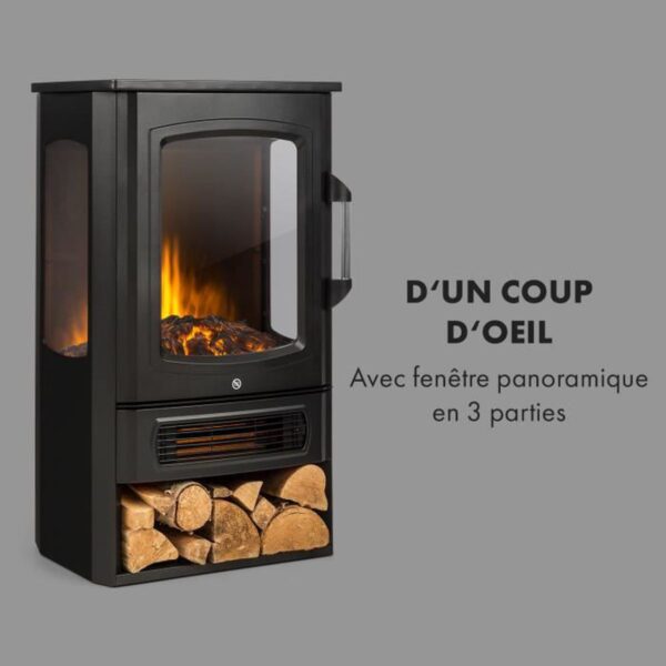 Klarstein Bormio Panorama Cheminée électrique, 2 puissances de chauffage 1000W – 2000W – Noir